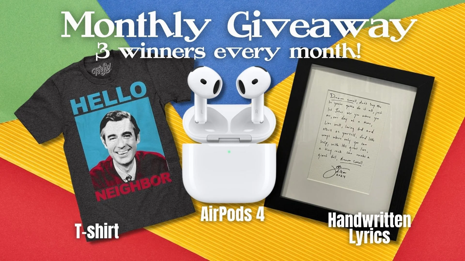 Join the list to keep up with Josh Wilson. Every month, Josh gives away AirPods, a t-shirt, and handwritten lyrics to 3 randomly picked list members.
